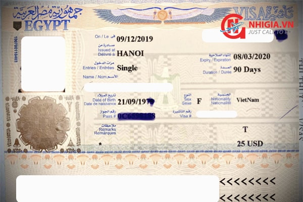 Visa Ai Cập có giá trị 3 tháng (90 ngày)