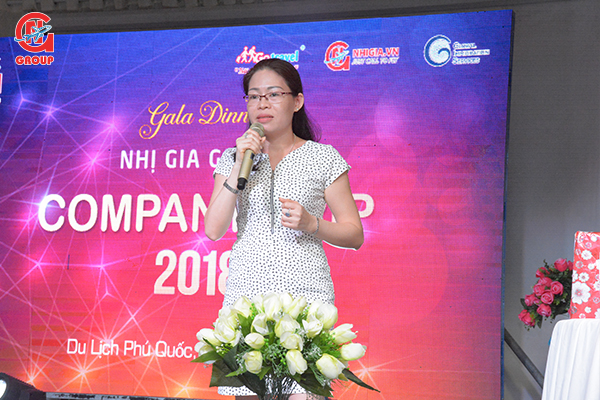 Bà Lê Thị Ngọc Triều - Phó giám đốc Công Ty TNHH TM và DV Nhị Gia phát biểu tại đêm Gala Dinner