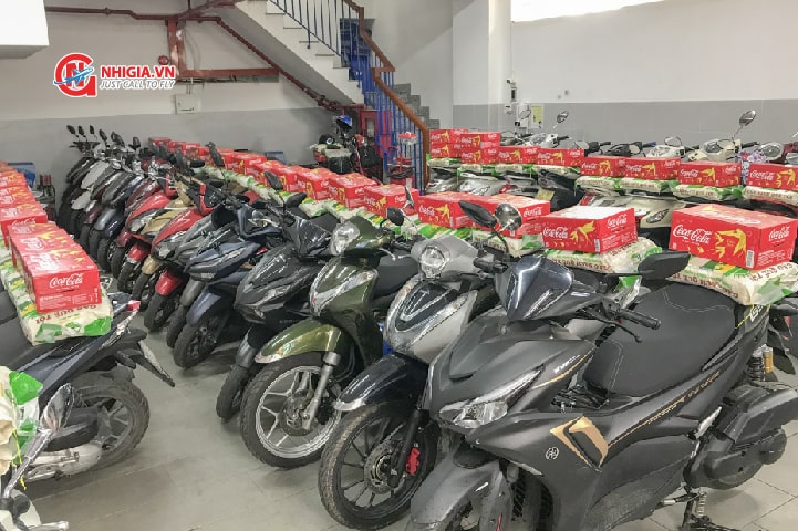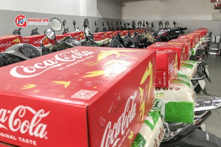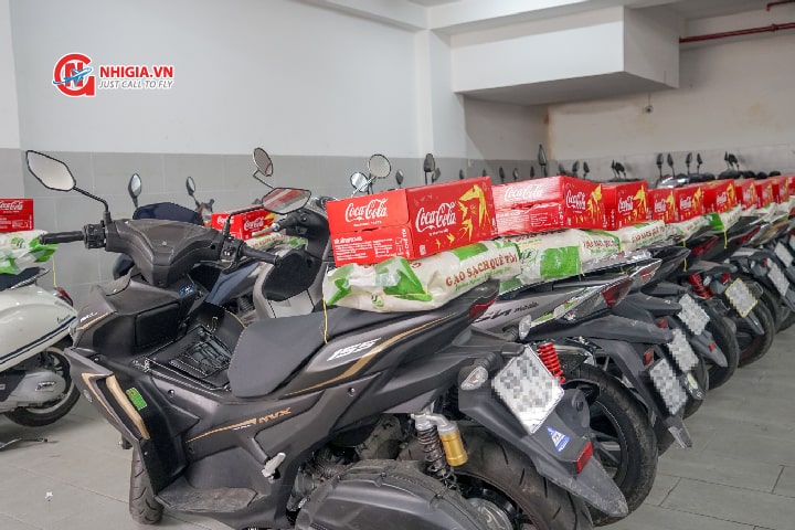 Các anh nhanh tay đem từng món quà để ngay ngắn sau yên xe nhân viên