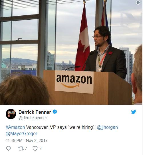 Tại sự kiện ra mắt vào ngày 3/11, Jesse Dougherty – người dẫn đầu trang web của Amazon tiết lộ thông tin: Văn phòng thứ 2 đang được mở tại Vancouver của Amazon đang lên kế hoạch tăng gấp đôi số lượng nhân viên, tạo thêm hơn 1000 cơ hội việc làm cho công nhân có tay nghề cao đến hết năm 2020.