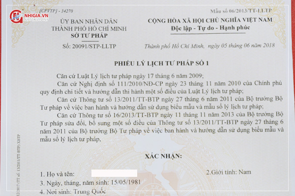 Làm phiếu lý lịch tư pháp tại Nhị Gia