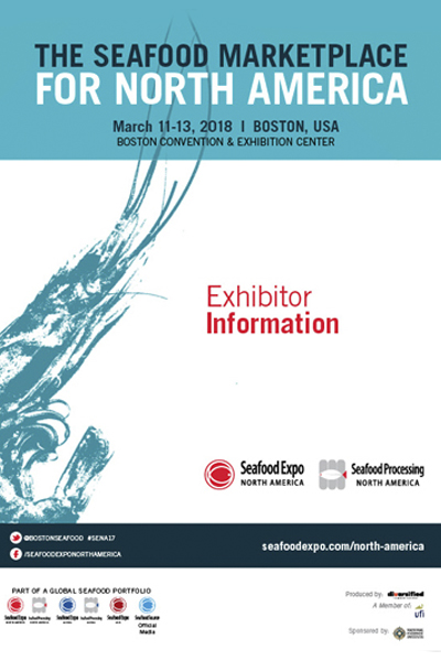 Seafood Expo North America 2018 (Sự kiện thủy sản lớn nhất Bắc Mỹ) do Diversified Communications tổ chức diễn ra từ ngày 11 đến ngày 13.03.2018, tại Trung tâm Hội nghị và Triển lãm thương mại Boston - Hoa Kỳ.